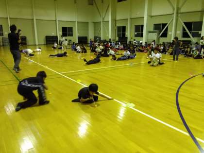 2ゲーム目は フーフー吹いてピンポン玉リレー です。