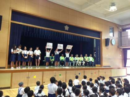 登下校の見守りをしてくださっている、「諏訪連合見守り隊」の方のお話を聞いたり、クイズをしたりして、交流を深めました。また、児童からは日頃お世話になっているお礼の気持ちをこめて、感謝状をお渡ししました。