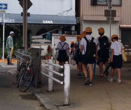 児童集会でのお話をもとに話し合い、登下校をするときの並び方や歩き方など、もう一度確かめました。最後に、「諏訪連合見守り隊」のみなさんが見守ってくださる中、元気に下校しました。