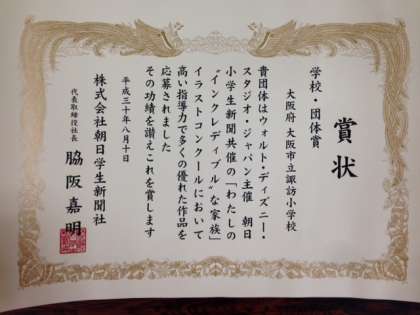 また、イラストクラブも「学校・団体賞」を受賞し、朝日小学生新聞に掲載されました。イラストクラブの子ども達は、描くことで家族への思いや絆をあらためて見つめ直したようです。