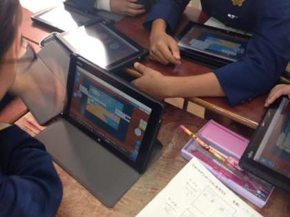 6年生は、タブレットを使ったプログラミングの授業でした。