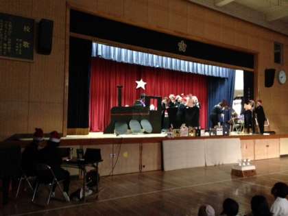 今回はクリス・ヴァン・オールズバーグ作の絵本 「急行 北極号」を取り上げていただきました。村上春樹の翻訳によるやわらかな文章にのせて、クリスマスのあたたかな世界が広がります。子ども達は、手作りの機関車や街並みのセットにびっくり。お話の世界にすっかり浸っていました。