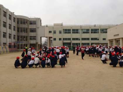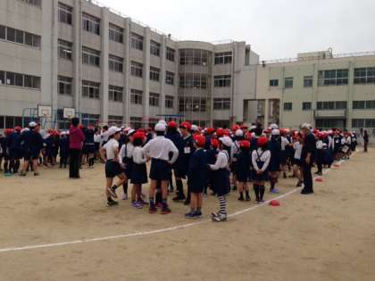 キッズファミリーの班ごとに集合し、集会委員の指示通り並びかえるというものです。できた班からすわるのですが、「出席番号」や「誕生日」など伝え合うことが必要です。互いに協力して、楽しくゲームをしていました。