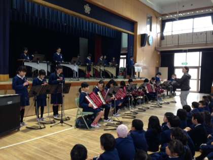 曲は「ドラえもん」と「前前前世」です。1年間の練習の成果を発揮した素晴らしい演奏でした。聞いている子ども達の態度もとてもよく、成長を感じました。