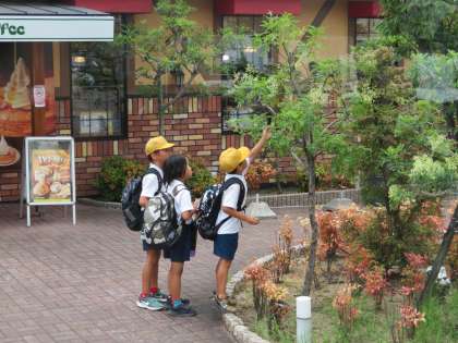 バスに乗ってすぐのコメダ珈琲のところで、4年生がセミをつかまえていました。