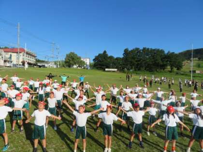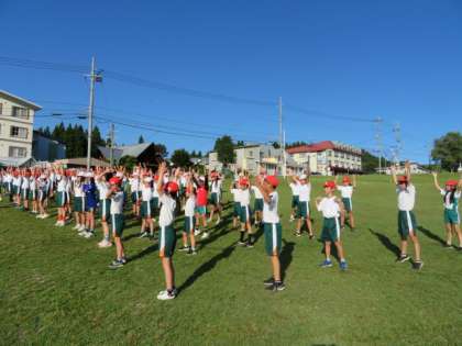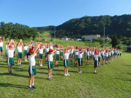 ラジオ体操で目をさましましょう。