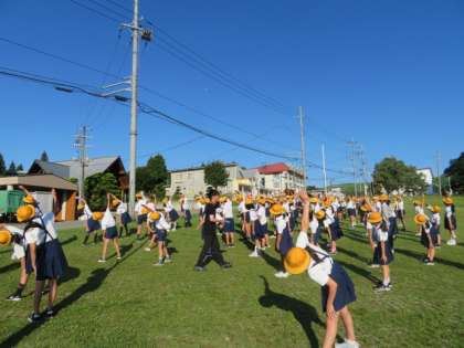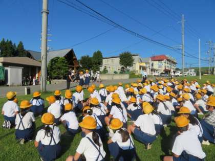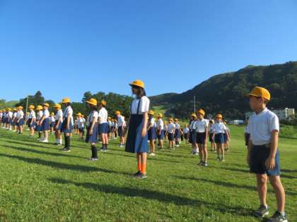 朝の集いです。ハチ高原の自然を堪能できるのも、これで最後です。