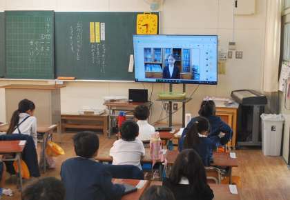 今日の児童朝会で二人からの挨拶と、校長先生から創立記念日についての話がありました。