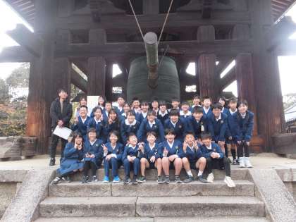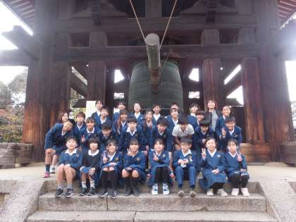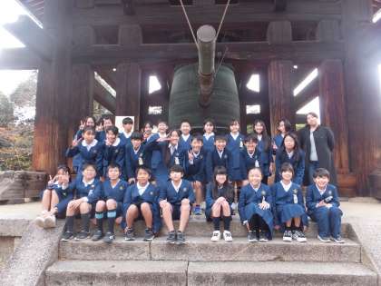 鐘楼の前でクラス写真です。