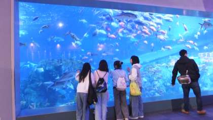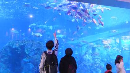 鳥羽水族館の前で記念写真です。