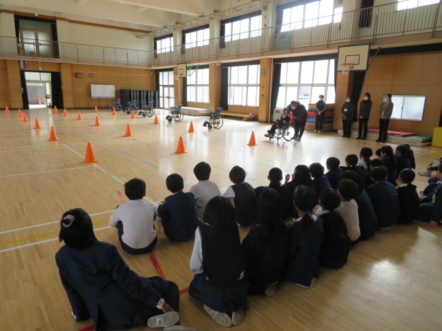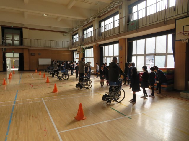 車いすを押すときには、乗っている人のことを考えた声掛けなどが大切ですね。上手にできましたか?