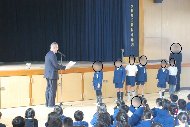 優れた読書感想文を書いた児童への表彰と大会で優勝したサッカーチームに所属する児童への表彰が行われました。