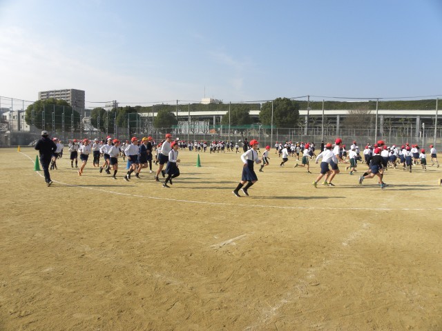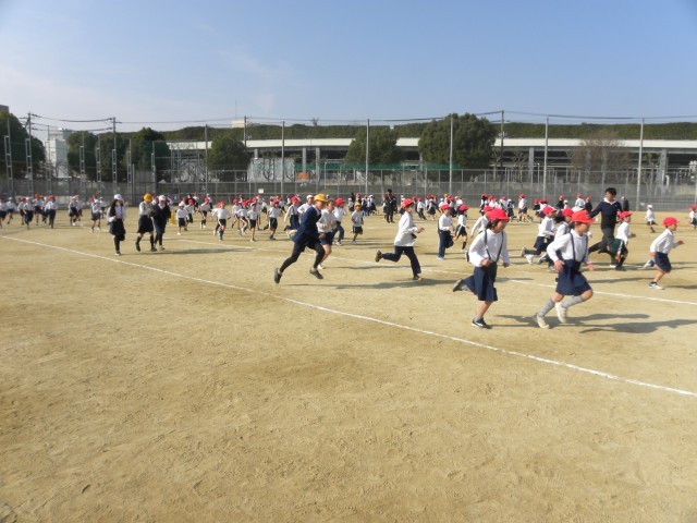 今日は2年と5年のかけ足タイムです。短い時間ですが、しっかり走って、風邪に負けない強い身体をつくりましょう。