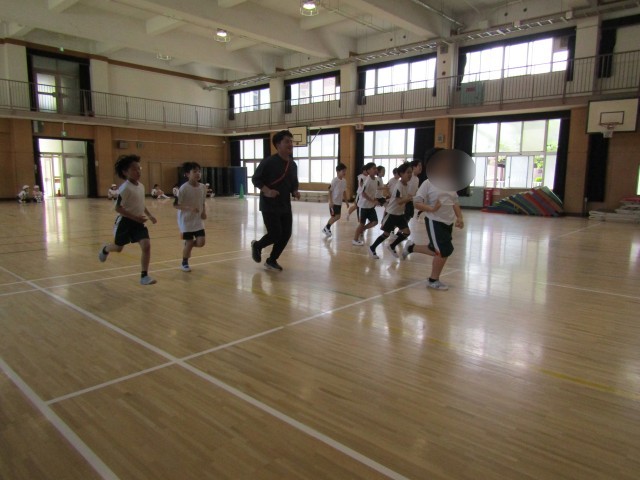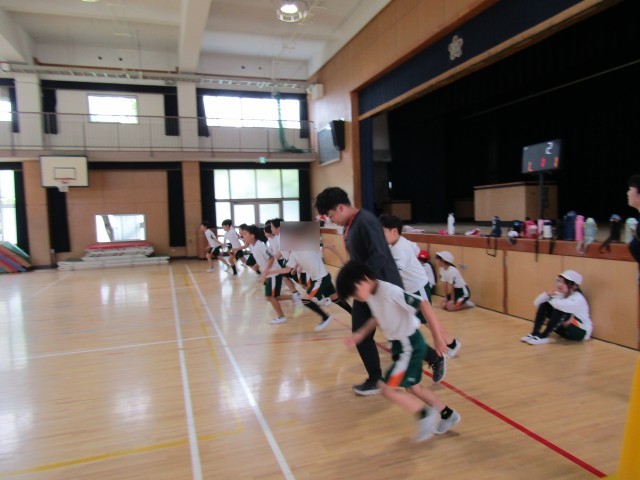 写真は、5年生がシャトルランに取り組んでいる様子です。子どもたちは、自分の記録を少しでも伸ばそうと、最後まであきらめずに一生懸命走り続けていました。友だちの頑張りに刺激を受けながら、全力で挑戦する姿がとても印象的でした。