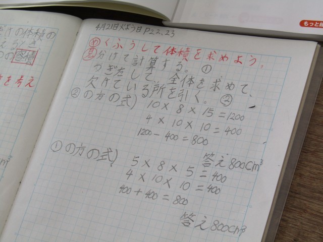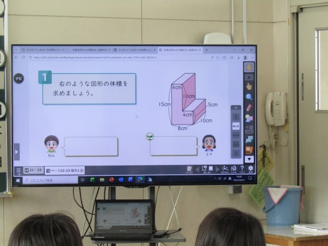 5年生の算数では、「体積」の学習に取り組んでいます。今回は、複合図形の体積の求め方について考えました。