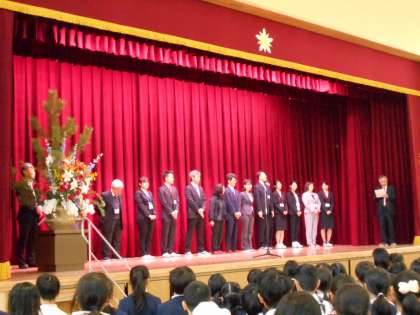 まず初めに、新しく成育小学校に着任された教職員の紹介がありました。たくさんの教職員の異動に子どもたちは、びっくりしていました。