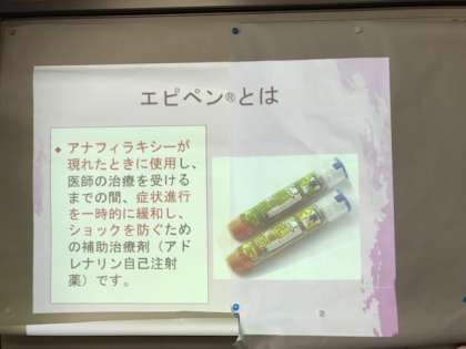 先日、放課後に教職員で、「食物アレルギー」についての研修会を行いました。