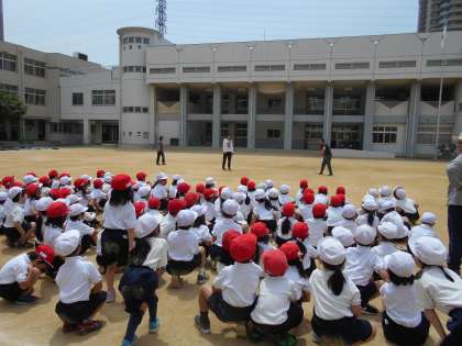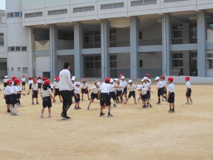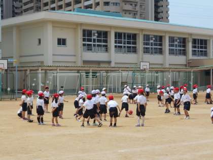 1年生が、体育科の学習で「ころがしドッジボール」に取り組んでいました。