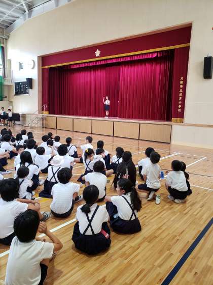 12日(水)は、1・4・6年生は講堂で児童集会でした。