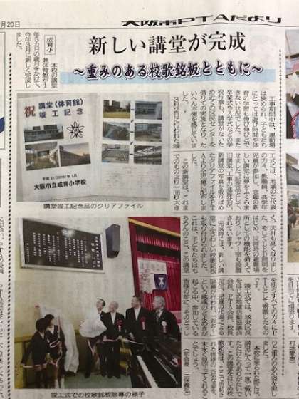 大阪市PTAだよりに「成育小学校の講堂の竣工式」が掲載されています。