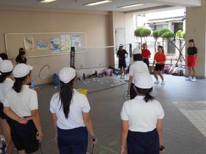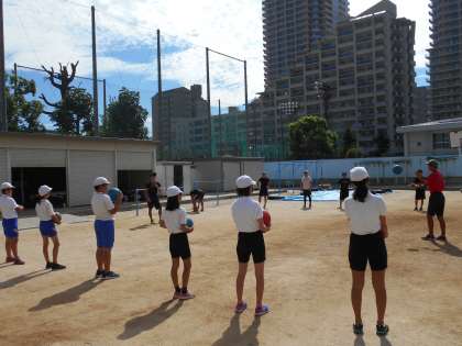 その後、希望しているクラブへ参加しに行きました。「さすが中学生、体力が違うな。」「先輩の教え方がうまいな。」と感心しきりでした。