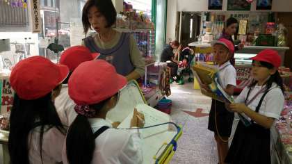 5人グループに分かれてお店をまわり、お店の工夫などをインタビューしました。
