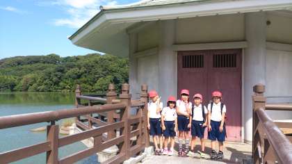 山田池公園へ遠足に行ってきました、先日、台風のため社会見学が延期になり、前日の昼に雨がパラリと降ったため「明日は晴れるかな?」とドキドキしていましたが、快晴の中、楽しく過ごすことができました。公園内の自然に触れ親しみ、元気にのびのび体を動かすことができました。