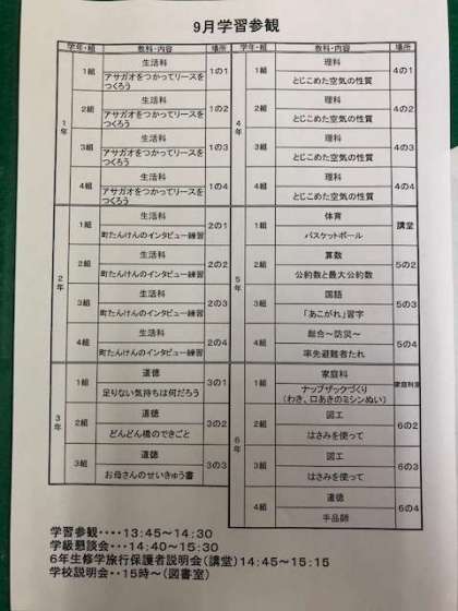 下記の写真に各学級の参観予定を掲載してします。ご確認ください。