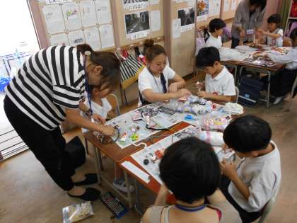 お家の人にも手伝ってもらって、世界にひとつだけのリースが出来上がりました!