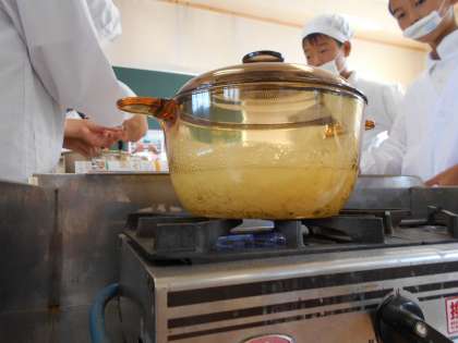 おなべでご飯を炊くのは初めてだったのですが、どの班も上手に炊けました。できたおこげも大人気で、おいしくいただきました。