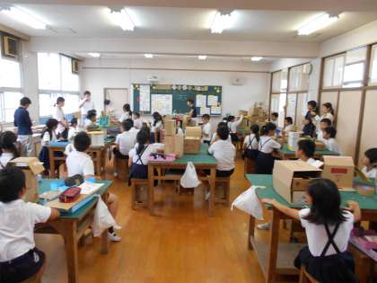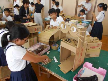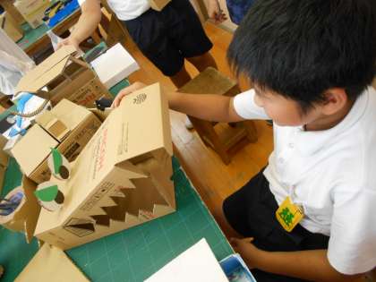 段ボールを使って、便利で楽しい「おもしろアイデアボックス」を工夫して作っています。