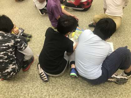 晩御飯を食べた後はお風呂に入りました。その後、ホテルの会議室を借りて、レクリエーションをしました。ジェスチャーゲームや伝言ゲーム、丸ばつゲーム、じゃんけん列車、お笑いをして盛り上がりました。楽しんだ後は、この日の振り返りをしました。