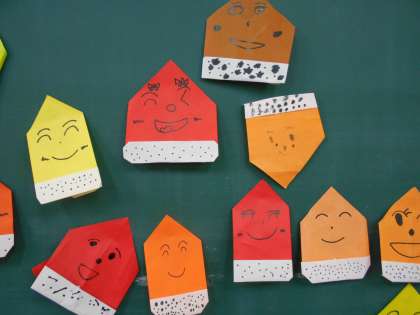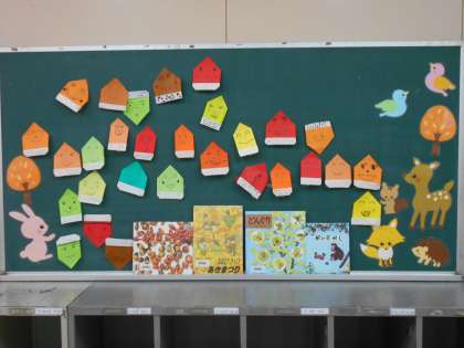 「どんぐりさんのおうち どこでしょう〜♪」と、歌いながら、折り紙でどんぐりを折っていました。