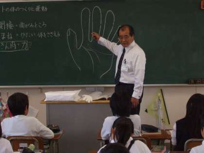 4年生の理科、「ヒトの体のつくりと運動」を校長先生が授業されました。
