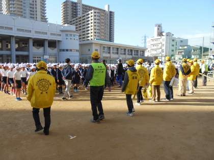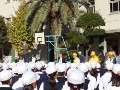 また、PTA会長からも感謝のことばと、より子どもたちにわかりやすいように、名称を「見守りレモン隊」となることが報告され、新しい帽子と上着のお披露目がありました。