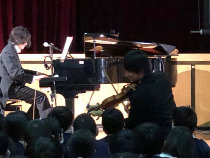 ピアノとバイオリンで、演奏してくださいました。 ベートーヴェンの「運命」と「犬のおまわりさん」のコラボや「ラデッキーマーチ」を手拍子で参加したり、作曲家あてクイズがあったり、あっという間の楽しいひとときでした。