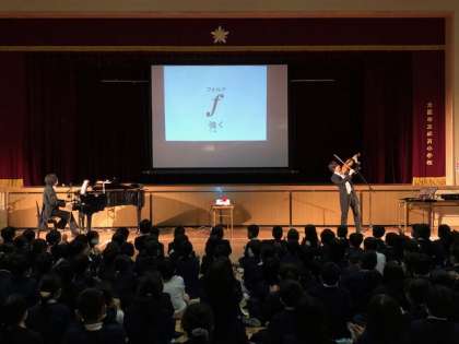 NHKEテレで「おんがくブラボー」という番組に出演されている「スギテツ」さんのお二人が来校してくださいました。
