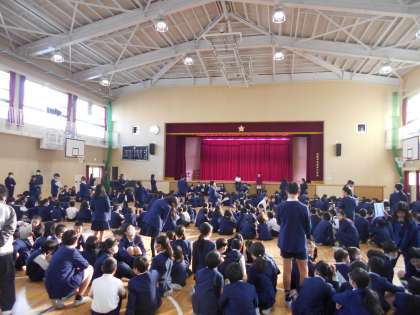 2月5日(水)の朝、集会(1・4・6年)ハッピー(2・3・5年)でした。