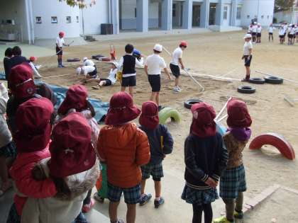 を見て「とおくまで、とんだ!」「しりもち、ついてないよ」