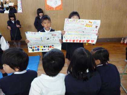 生活科の学習で、2年生が「おもちゃ」を作り、1年生を招待して