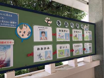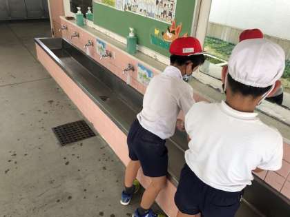 学校では保健委員会の児童が作成した〇〇〇〇ポスターを各手洗い場に置き、担任が活動の合間に〇〇〇〇を呼びかけています。毎水曜日に保健委員会の児童が石けんを補充します。1回30秒。いつもより少し長めに、ていねいにを心がけましょう。