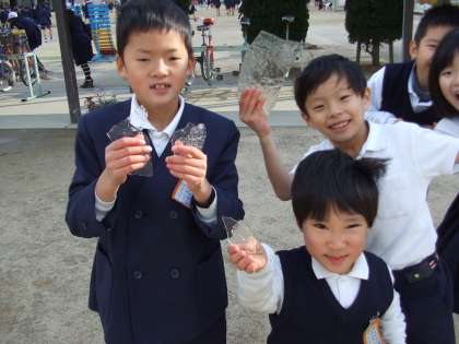 2年生が見つけて、さわっていました。氷が壊れないように