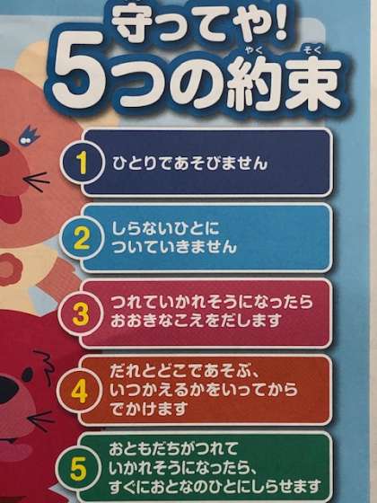 5.おともだちがつれていかれそうになったら、すぐにおとなのひとにしらせます