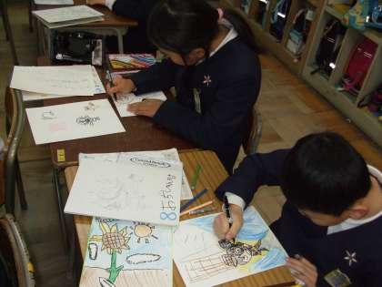 3年生は、巨大かるた作りをしました。普通のかるたの8倍ほどの大きさの