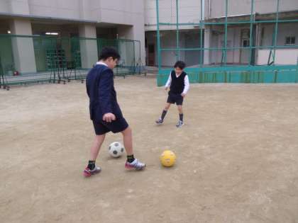 ボールやフラフープを使ったり、たくさん走りまわったりして寒い中、運動場で1時間。