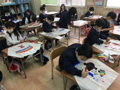 3学期が始まり1年生の生活科では、木駒・凧を使ってお正月遊びに親しんでいます。自分なりに色をつけたり、絵を描きながら、早く遊びたいなと子どもたちはわくわくしている様子でした。