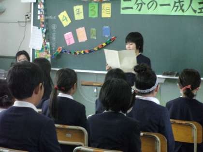 2月10日の学習参観で、4年生は2分の1成人式を行いました。