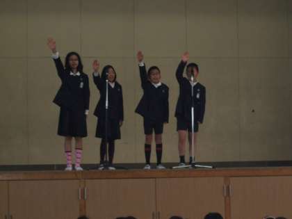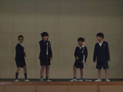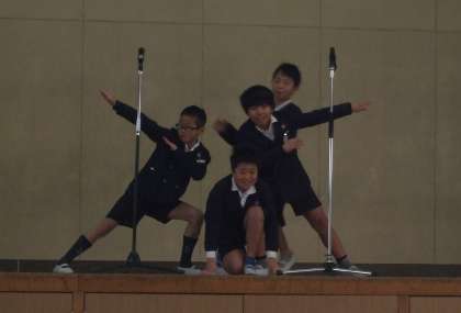 先日、講堂でお笑いクラブの発表がありました。1年間の活動のまとめの発表で、漫才、コント、落語などを披露しました。舞台の上に上がって、全校児童の前で堂々たる芸人魂を発揮していました。講堂は笑いの渦に包まれていました。