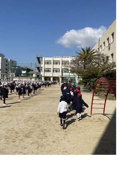 2年生から6年生までのお姉さん、お兄さんたちが音楽に合わせて手拍子で温かく出迎えました。代表の人からは、「わからないことはなんでもきいてください。きゅうしょくには、ハンバーグやカレーのメニューがありますよ。」と学校の様子を教えてくれました。