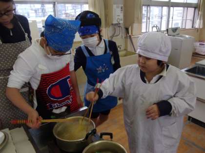 今年度の調理実習はこれで終了です。3回目の今回は今までよりも手際よく、また周りをよく見て、協力して行えている姿がありました。